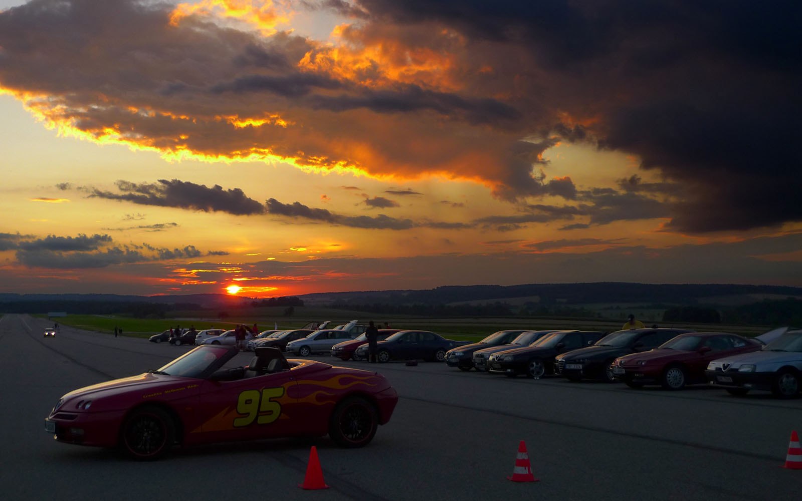 Sraz super,počasí objednané,účast hojná,alfičky přežili bez úhony.Škoda trochu zmatků v řazení na první ostré jízdy,později vyřešeno a pěkně to odsejpalo.Klobouk dolů ,,žlutým,, alfistům.By mě zajímalo,jak naložil Kubas s dortem za nej alfu,pokud ho dovezl domů v celku.