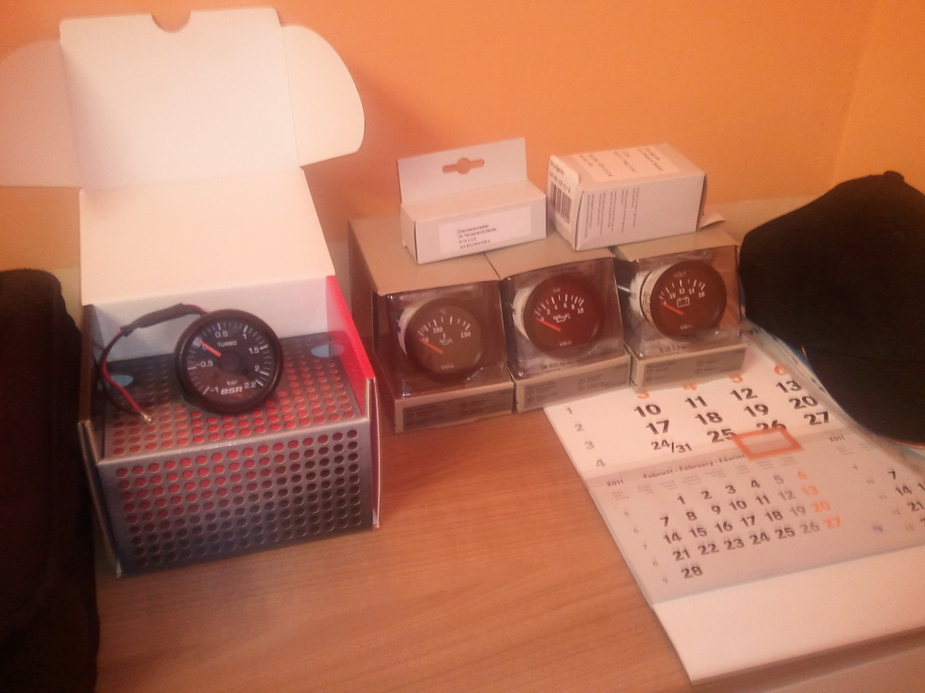 Aktualne: Po nekolika desitkach km se projevil dalsi nedostatek - unik motoroveho oleje ze zaslepek vyvazovacich hridelu - v sobotu probehne jejich vymena (bude muset dolu prevodovka). Jinak by melo byt uz vse ok. Dorazili take merice na tlak turba, tlak a teplotu oleje a voltmetr. Samozrejme vcetne cidel, ktera jsem musel kupovat zvlast. Budik tlaku turba je od BSR (byl mi doporucen misto VDO - ten se jim pry moc nepovedl), ostatni je VDO. Budiky jsou mechanicke a svym vzhledem se hodi k seriovym budikum Alfy.