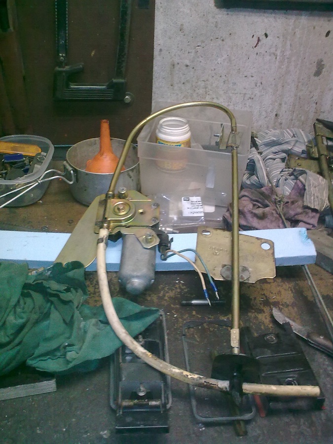 Možná někoho bude zajímat, jak mám udělané elektrické stahování oken na zadních dveřích, tak sem tu stahovačku vyfotil. Při blízkém pohledu jde vidět, že to není originál a že je to předělané z nějakého auta, ale celkem fungují :smt023.