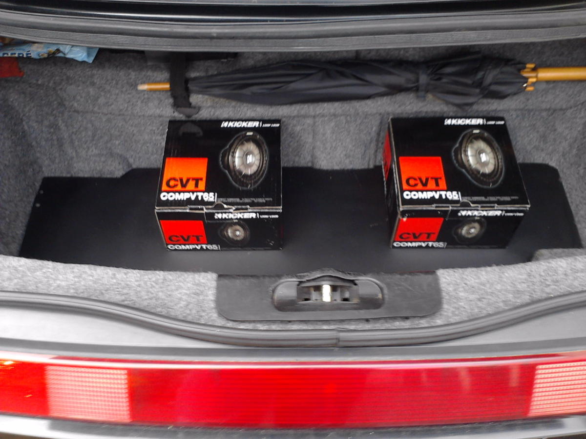 Dále a prozatím před zazimováním (záleží na počasí), jsem řešil ozvučení alfy. Po dlouhém promýšlení kam osadit subwoofer a zesilovač tak, aby se kufr dal nadále používat, vypadalo to pěkně a aby to hrálo, jsem došel k závěru že nejlepší bude vyměnit originální reproduktory 165mm za hlavovými opěrkami zadních sedaček za dva subwoofry značky Kicker. Zesilovač jsem nakonec koupil čtyřkanál Crunch a umístil jsem ho do kufru do vlastnoručně vyrobené bedny a je schovaný pod plexisklem. Jsem s tím spokojen, ale ještě příjde výměna předních repro a dolazení... :-)