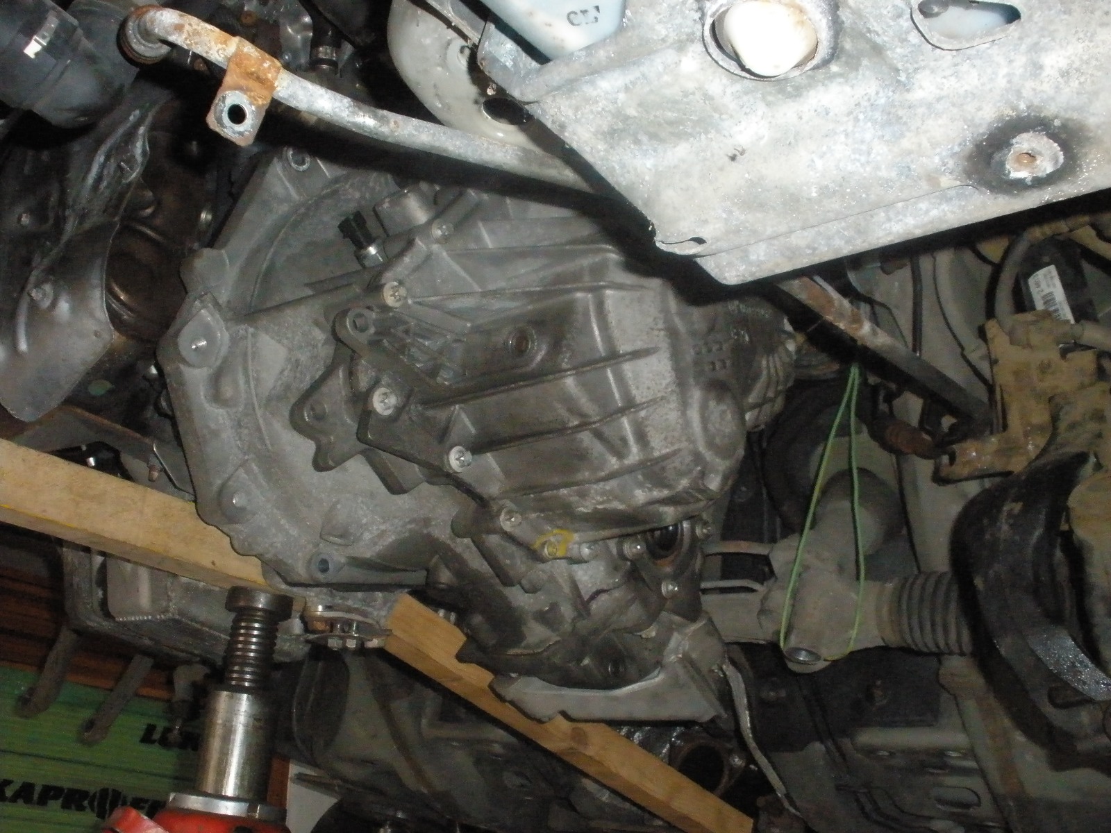 Vyheveroval jsem auto na dvě trojnožky které jsem ufušoval v práci a za prispění několika rad mistra Cendlera se dal do díla. Je to docela pakec musí jít dolů celá nápravnice, obě poloosy, startér, baterka a vše kolem ní. No zvládl jsem to cca za 10hod. Rozebrat převodovku už byla brnkačka. Diagnóza - totálně hotový přední ložiska. Takže ložiska se vyměnily a když už to bylo všechno rozházené tak se vyměnilo spojkové ložisko, udělala se GO startéru, brzdy (stočení kotoučů) a kámoš mi ještě vzal do práce otryskat a nastříkat nápravnicu.