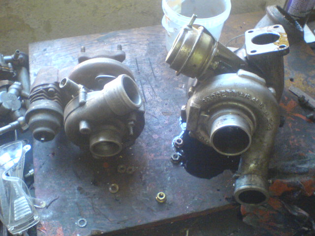 tak sem namontoval staré turbo z 2,0TD s ohlou lopatkou (nic lepšího sem po dílně nenašel)