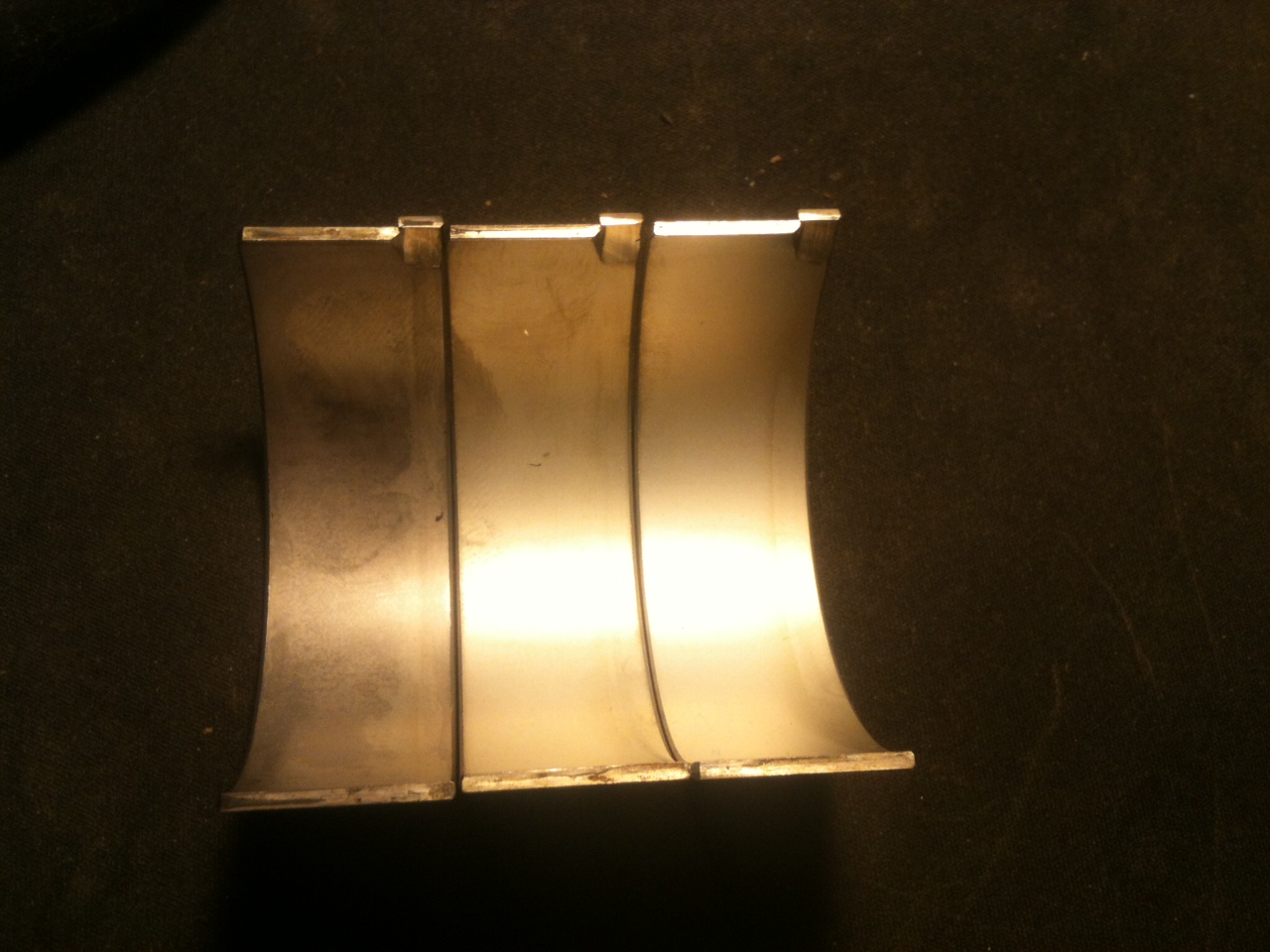 Kontrolně jsem rozdělal svůj nový přírůstek (147 2.0 TS rv.2005 najeto "70000"). Ojniční ložiska (viz foto) sem tam nějaký drobná rýha (až na první tam už je ta rýha docela hluboká). No nestojí moc, tak koupím nové. Pak jsem shodil kontrolně i víka u kliky - první sotva znatelné rýhy, ostatní v pořádku až na to poslední (viz foto)