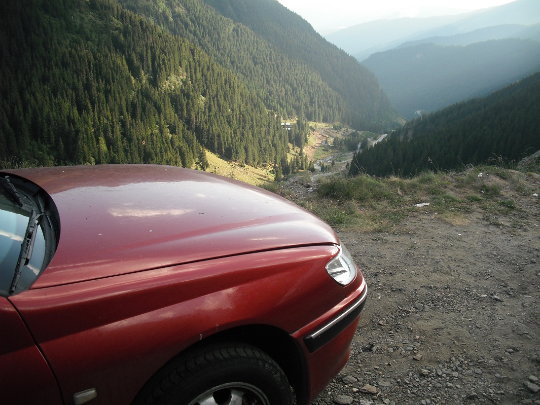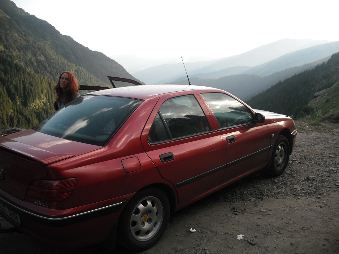 při jízde 160km/h sme ztratily plastový podběh před PP kolem a přední nárazník se vlivem náporu větru docela deformoval, protže ho už ze spoda nic nedrželo- navíc jízda se špatnou chladící soustavou se po zastavení projevila nepatrným vyvřením, což si i 406ka trochu odplivla při vyjíždění TRANS ROAD- viz foto