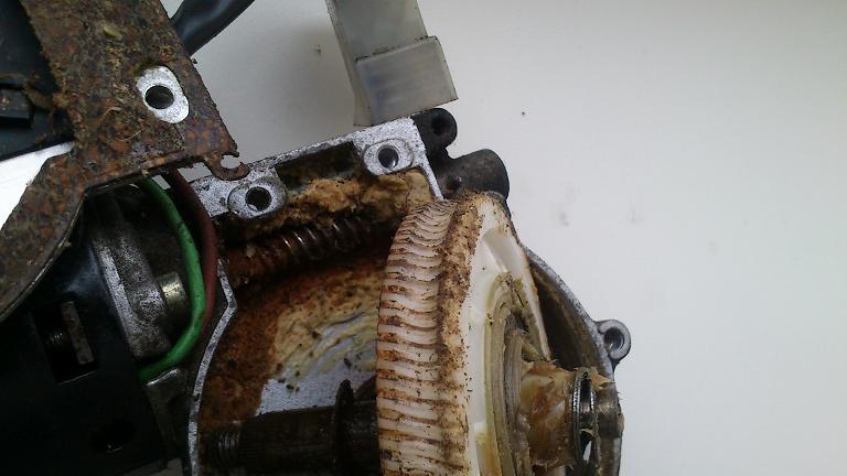 Tak jsem konečně rozebral ty stěrače, koukám na ohoblovaný plastový ozubený kolečko v motorku... co je na něm napsáno? Samozřejmě BOSCH:D. Rok výroby 2006, takže už ho někdo měnil a životnost je něco kolem 5 let, super:))