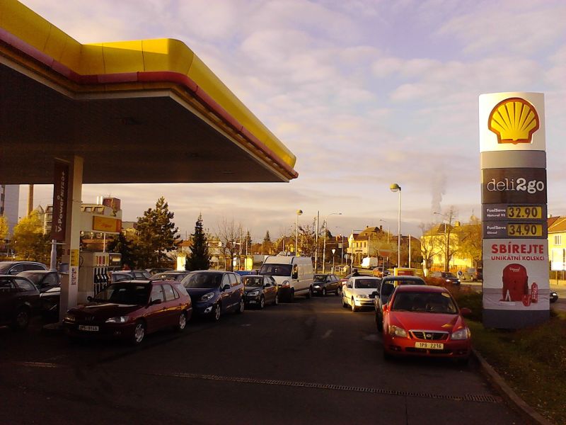 Shell na Koterovský 32.90.. Konec světa, fronty jak debil