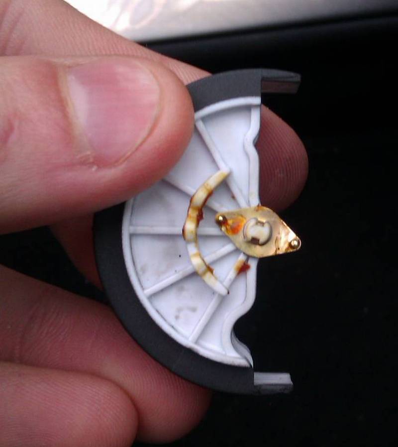mám taky jeden problém se světlama. Měnil jsem žárovky na potkávačkách a přišel jsem na to, že mi nejspíš nefunguje náklápění světel (myslím tím to kolečko pod volantem - polohy 0 - 3). Kolečko jsem zkusil vytáhnout a dát zase zpátky, ale bez úspěchu. Připadá mi, jako by tam něco chybělo. Nekoukal jste do toho už taky někdo? Přikládám nějaké fotky, snad z toho něco poznáte. Je mi jasné, že ten plíšek vlevo běhá po tom vroubkovaném osazení na kolečku. Předem dík za pomoc