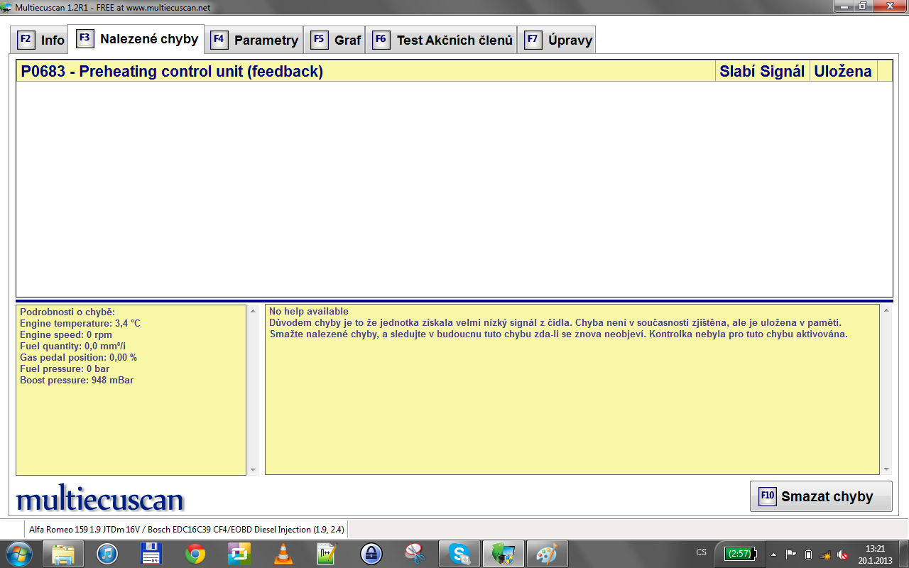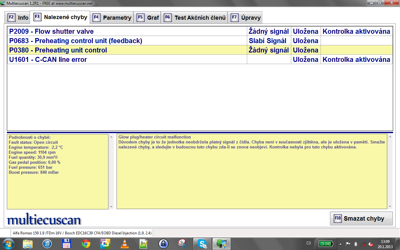 1. Po výměně žhaviček je dobré přes diagnostiku vymazat chybu.