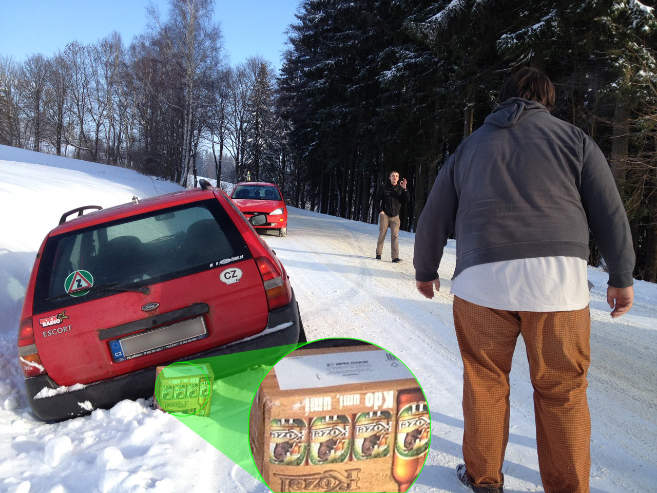 Zdenda zatahl rucku ( u spolujezdce ) a uz to bylo