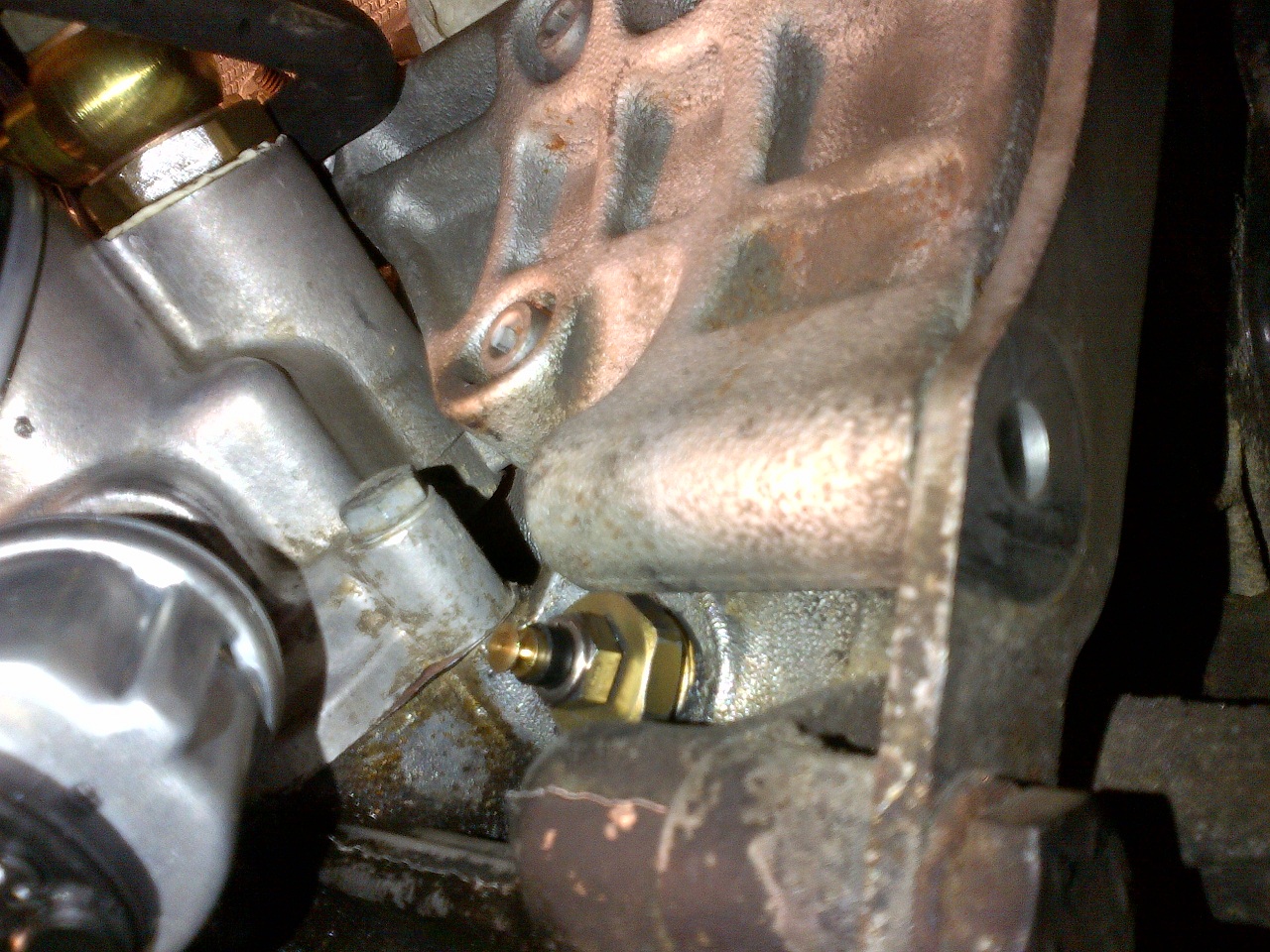 Na bloku se nachází zátka cca průměr 25mm (odhadem). Místa je všude dost a přístup je k tomu bezvadný. Nevěděl by náhodou někdo přesný rozměry toho závitu aby se dala vyrobit vložka na připojení?