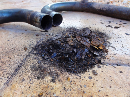Výfuk hotovej... Mírně se to komplikuje... Střeďák je taky z 2.5 tím pádem menší průměr... k...a:-):-):-)