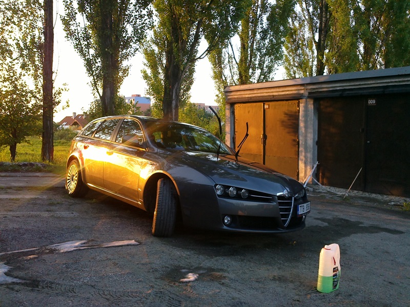 K výročí 180tkm dostala Alfa trošku pozornosti: minulý týden nový olej (Selenia WR 5W-40). Včera kompletní luxování, vyhození gumových koberečků a nahození velurových. Odchlupení alfatexu ze sedadel (zlatý IKEA lepivý váleček