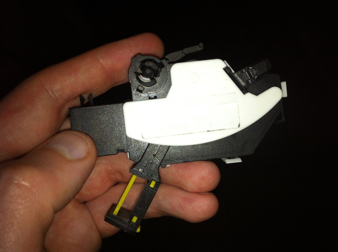 lehnout pod pedaly, tapeco-koberec odsroubovat pryc, odpojit svorku, malinkou packu na cidle odjistit aretaci a je to dole, vevnitr je normalni tistak/kuprexid, na nem kovove drahy a kartacky, vycisteno, prostrikano kontaktolem (jak jinak