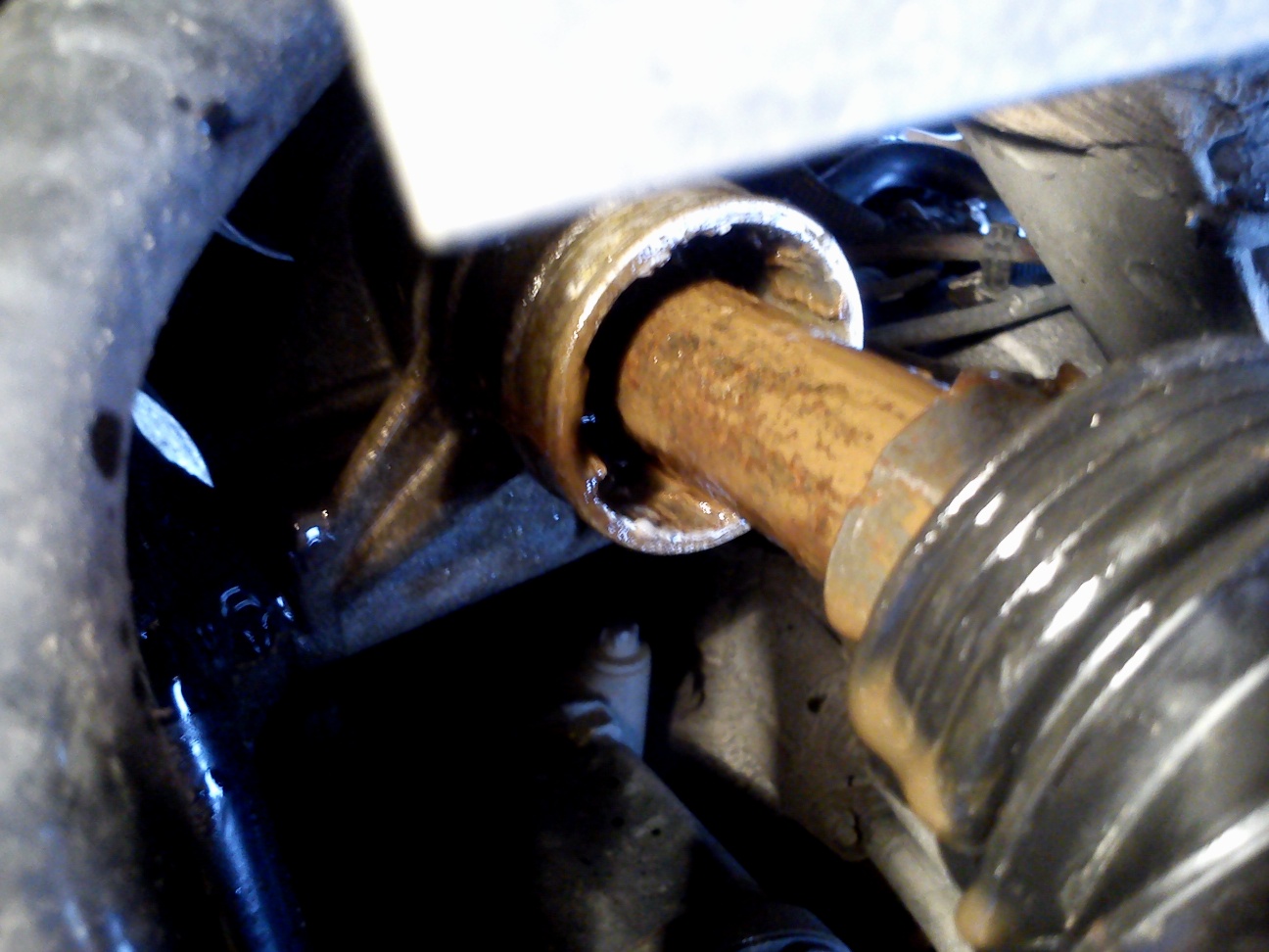 Jn, tak přesně tohle mi to dělá. Možná to je ale normální stav, nevím. Myslím si, že jsem to měl načaté a jak jsem tam dal tu zelenou, která není tak hustá, tak to začalo protíkat, no. Přišel jsem na to tak, že mi ubylo trošku kapaliny v nádržce a tak jsem kouknul na tu pravou manžetu a je na ní olej ze serva. Levá je suchá. Mechoš na to koukal a říkal, že to zatím moc neteče, že ještě chvíli vydrží. Nechci ale riskovat, že pak nezatočím.