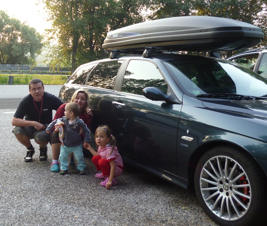 Jinak cesta domů v pohodě, přes Brener, alfice šlapala jako by nic, naložený jsme byli jak cikáni. Cesta trvala přesně 12 hodin i s hodinovým řešením tech. problému sousední posádky na Citroenu.