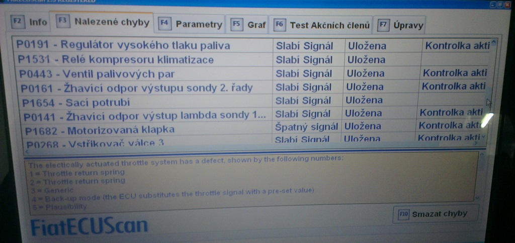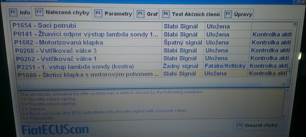jinak tohle mi Petr poslal:Jak na to koukám, tak to spolu asi souvisí, máš chyby na vstřikovačích, to pak dává špatné katy a lambdy... Takže bych začal palivovou soustavou, vstriky repasuje jetservis.cz za pár korun, kouknout na kabely od svíček, svíčky... To je tak co si muzes udělat sám, pak lambdy tam máš 4, takže dat kouknout které jsou špatné, jestli neni nekde urvany drát podle chyby kostry, dat dolů vyfuk a podívat se na katy... Pak kouknout na klapku... Pak čekat, co se ukáže... Treba ta chyba ridici jednotky je zajímavá... Hlavně stav rozvodů, ložiska na klice