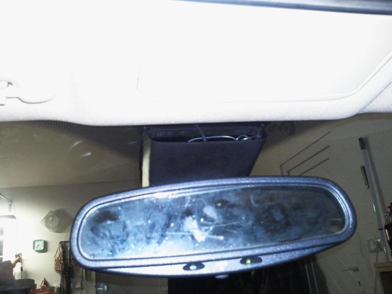 Musí se demontovat staré zrcátko - to jde poměrně jednoduše opatrně zatlačit směrem k palubní desce a zrcátko se vycvakne, na skle zůstane přilepená kovová část na kterou se může nacvaknout samozatmavovací zrcátko. Ale pozor!!!!! nebude Vám navazovat konec zrcátka ke stropnici a bude tam nevzhledná 10cm mezera viz foto.
