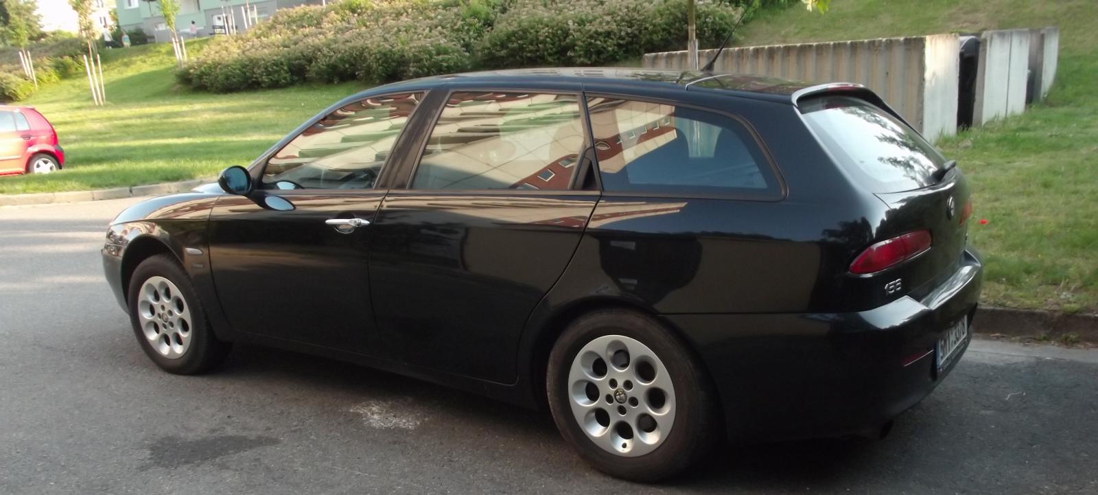 Alfy jsou auta, který mě zaujaly už dávno. Nicméně z jistých důvodů jsem 9 let jezdil ve škodě Garde, kterou jsem od nákupu do nedávna minimálně jednou celou rozdělal a složil a kterou za její kariéru poháněly asi 3 motory, z nichž poslední byl z Felicie 1.3 MPi, a to včetně toho vstřikování. Ted čeká v garáži a v následujících letech podstoupí renovaci do původního stavu, protože - Alfisti prominou - je to hezký auto a mám ji rád :-) Alfu jsem sháněl na netu a občas se stavil v nějakým Brněnským bazaru. Chtěl jsem benzínový motor, buď 1.8 TS, nebo 2.0 JTS. Barva černá, ideálně po FL, r.v. 2002+ (aby byla po FL vnitřku). Původně jsem chtěl sedana. .... po měsíci jsem našel na bazos.cz inzerát soukromníka z Mostu, co nabízel 2.0JTS z roku 2004, ale byl to Sportwagon. Nicméně Alfa vypadá i jako kombík hezky a je to přecijen trochu praktičtější auto. Vyměnili jsme si pár mailů, chlápek tvrdil, že je to jeho 4. Alfa a že se rozhodl ji prodat a koupit dodávku. Nabízel sadu letních gum v ceně a už po mailu jsme se dohodli na slevě, takže za ni chtěl ve finále 70.000,- CZK. Fotky v inzerátu vypadaly takhle: Jednoho dne jsme tedy s kolegou z práce vyrazili do Prahy, kam se prodejce uvolil Alfu dovézt. Udělal jsem to, co se nedoporučuje snad v každém článku o nákupu ojetého auta .... nasedl, projel se, zamiloval, zaplatil a odjel :-) A to byla první Alfa, kterou jsem se svezl. Ale nelituju !