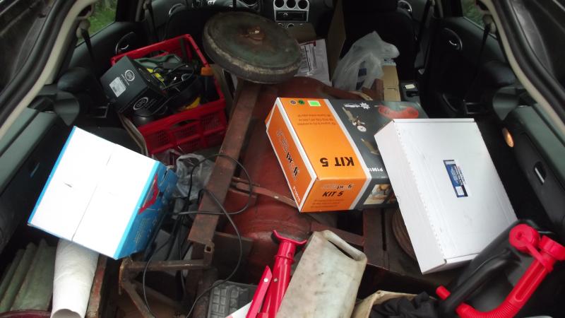 V půlce máje jsem ovšem ... na Jihlavské dole u hřbitova v Brně prorazil vanu. Skončil jsem tedy na laně za Focusem toho nebožáka, co mě před pár měsíci vezl do Prahy pro Alfu. Odtáhl mi auto do práce do garáží a já jsem začal přemýšlet, co s tím. Teď je to ve fázi, kdy je vana sundaná, klikovka přeměřená a prodiskutovaná na foru a mě tedy čeká další výměna šálků, nalití Bishopu 460, výměna variátoru (to nesouvisí s vanou, ale když už se v tom hrabu), zavaření té vany, a našopování toho kousku výfuku z Robertova auta. Doufám, že se mi podaří auto zase brzo rozchodit a přibudou tu fotky složené Alfy a komentář, jak to hezky jede. Zatím si vozím prdel i náklad na mém železném oři....