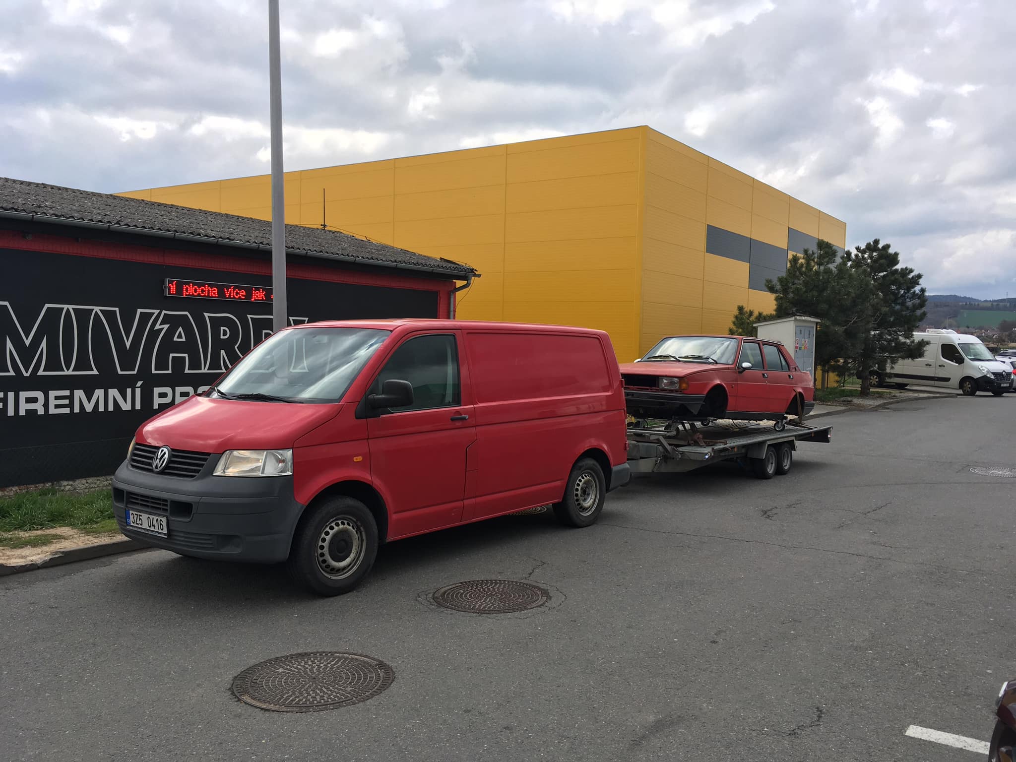 No a na fotkách je má nová tažná souprava. Sice těch 60 kw co ten Transporter má je v kopcích fakt lenoch, ale za to to řere furt 8 na sto a na dalnici se s tím po rovině dalo jed 100 plus