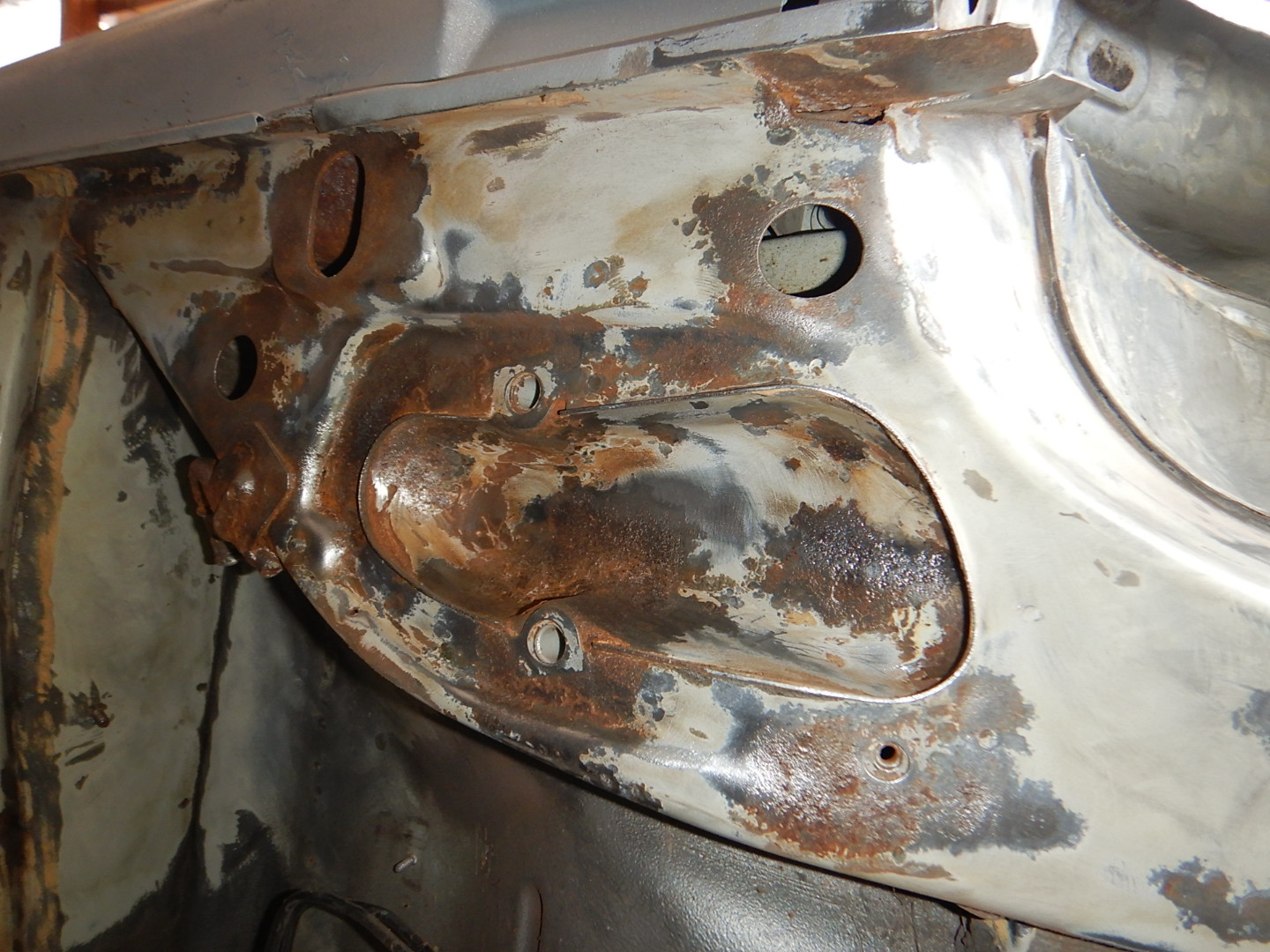 šroubovákem se mi povedlo vytvořit díry cca 2x2 cm s tím že okolí je hrachovina, tak se bude řezat... uvidíme jak moc.. nutnou plechařinu z nových dílů mám už doma (prahy, zadní lemy, držáky předních blatníků..)