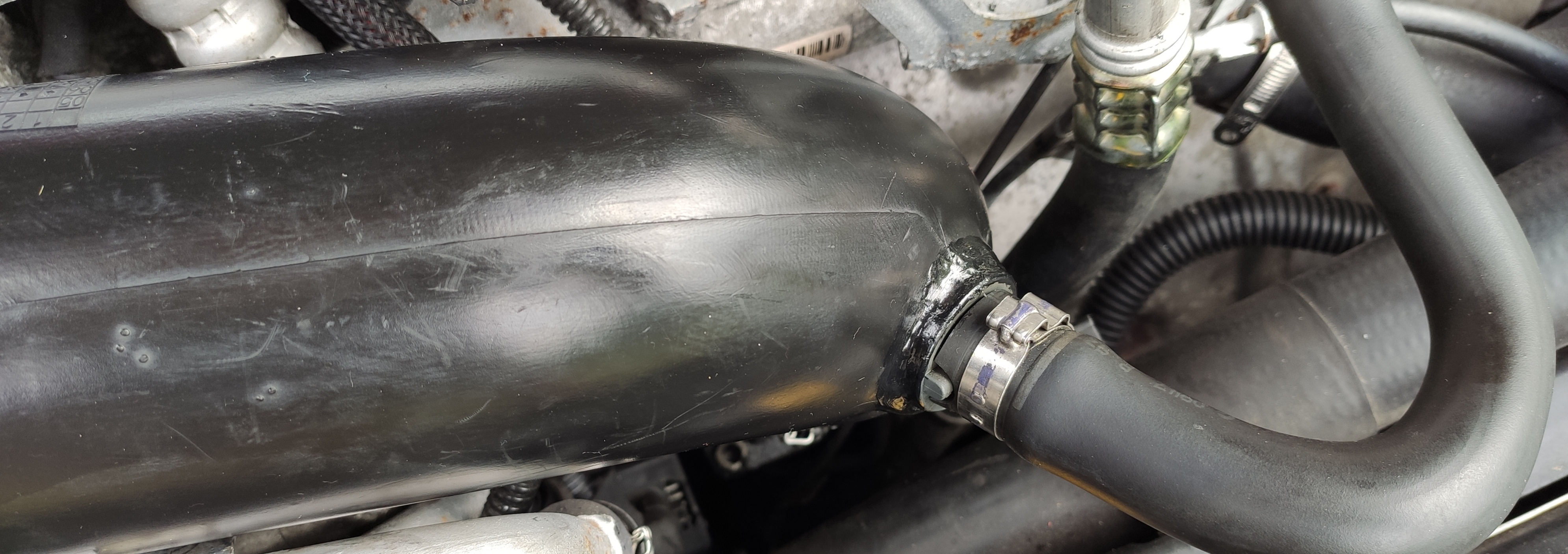 Dnes jsem úplně náhodou objevil netěsnost na sání, resp. na hadici mezi vzduchovým filtrem, váhou vzduchu a turbem.