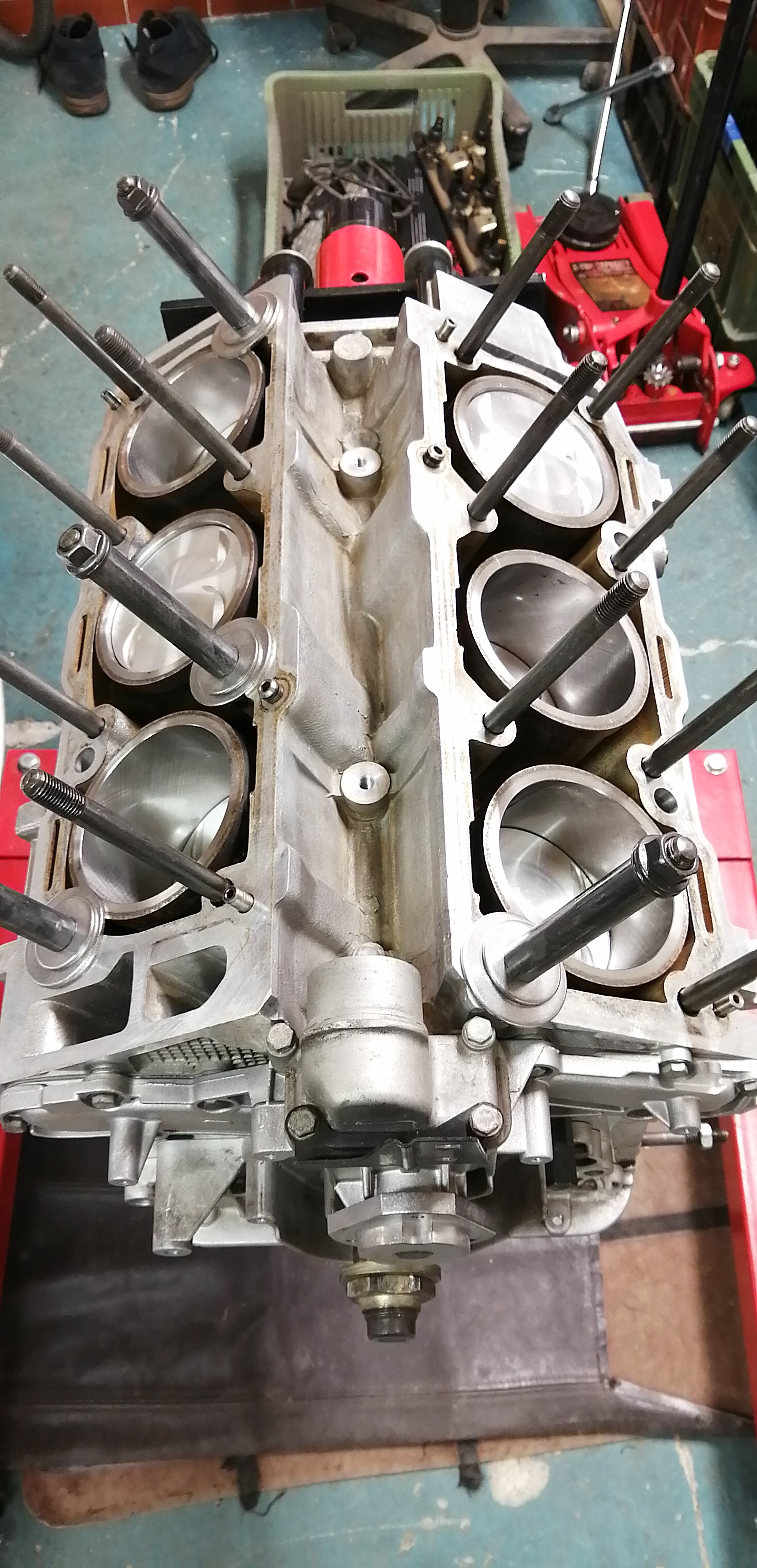 a začal jsem shánět jinej motor. Nemožný koupit nějakej za rozumny penize v rozumným stavu. Spravit tu 3.2 jsem úplně zavrhl, neboť sehnat kliku je utopie. Nakonec jsem sehnal za pár šušní motor 3.0 z Lancie Thesis s najetejma 160 tisícema. Motor vypadal na pohled moc pěkně, suchej, čistej, říkám si ten bude dobrej. Jelikož sem měl takový tušení, z minulých poznatků ohledně tady těch motorů, tak jsem motor celej rozebral na prvočinitele a odvezl do Brna do motor díly pavlíček a tam mi bylo řečeno, že v podstatě dobrá je jen klika