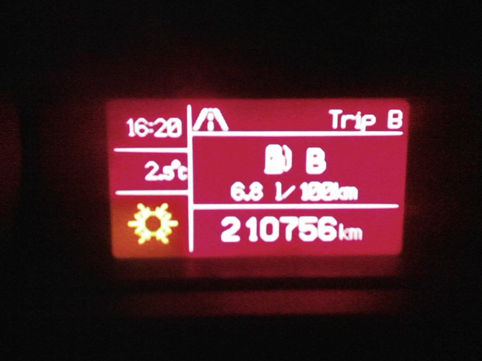 Říkal jsem si, že dostat celkovou spotřebu zpět na 6.8L/100km je shola nemožné, protože představa jezdit bůhví kolik km s velmi lehkou nohou..to se nedá vydržet.Poslední dobou jsem se trochu mírnil ( i díky cenám benzínu ) a o víkendu jsem jen tak mrknul na trip "B" a helemese,helemese ....číslo se opravdu zmenšilo na 6.8 L/100km.Průměrná rychlost je stále 55 km.