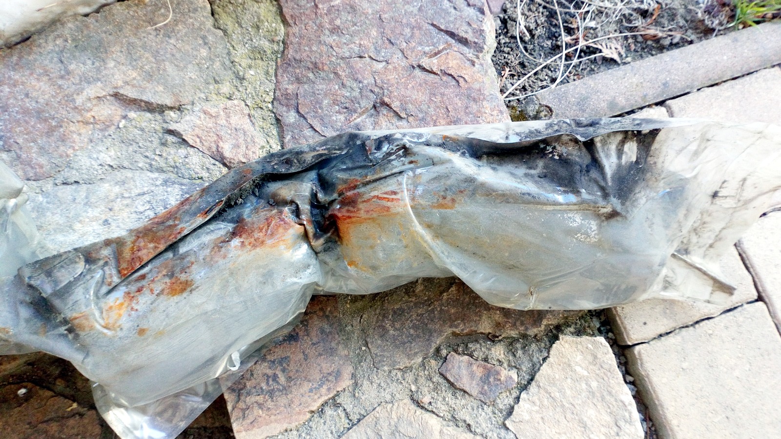 Taky jsem vytáhl molitany v sáčku, které jsou umístěny v prazích auta mezi B a C sloupkem. Časem se mezi ten práh a sáček dostane bordel a vlhkost a začne to rezivět. Jeden byl v pohodě, ale na druhém už je vidět koroze. Naštěstí jsem to zachytil ještě včas. Dokáže to zničit práh. :D