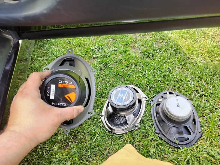 Tak auto už hraje...:-). Audio bylo v neskutečném maglajzu,dal jsem radio a Hertz repro. Teď zbývá jestě zapojit 5kanal zesik a vše přepojit,v autě je jakýsi woofer,tak jsem ho nouzově zapojil:-).