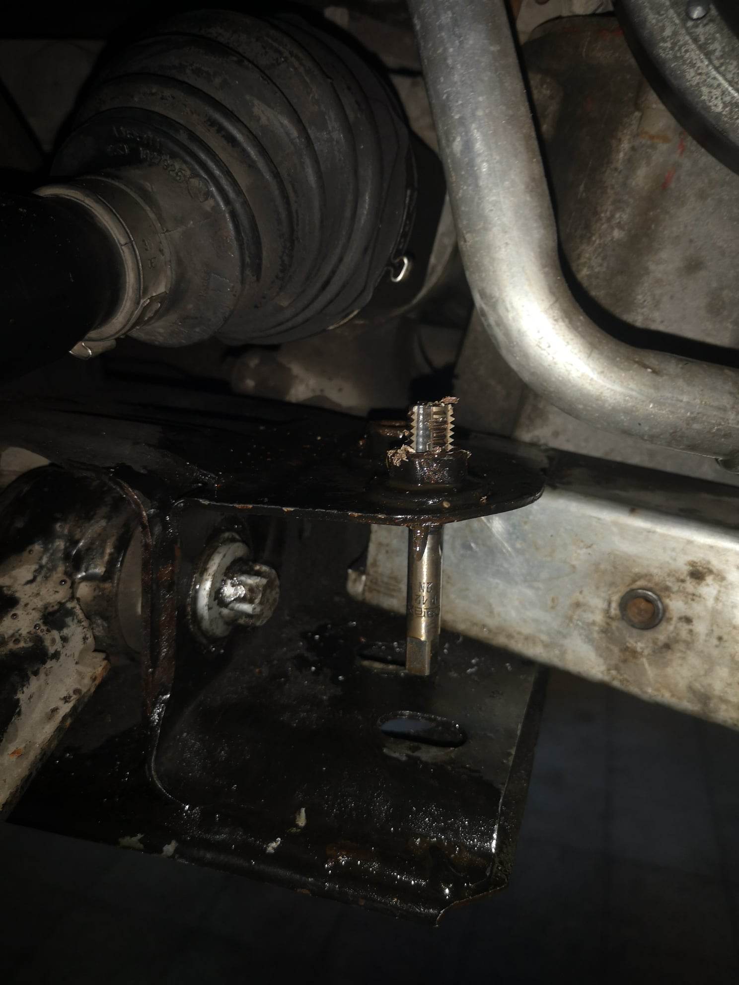 Vec ktorej som sa bál najviac (dva šroby pri zotrváku) boli asi najjednoduchšia časť demontáže.... Štyfty na výfuku sa mi podarilo oba odtrhnúť tykže som ich odvrtal a nahradil šrobami, vyhodiť poloos nestačilo bolo treba odkrútiť spodný držiak motora a celý motor nahnúť dopredu lebo by tú vaňu z tadiaľ nikto nevytiahol nie aby ju tam ešte potom s naneseným silikónom dával späť