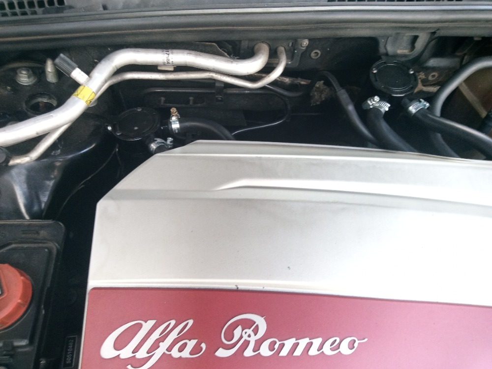 Konečně se mi povedlo dostat auto na dílnu a nastartovat - byl zaseklej palivovej ventil (? ta lesklá věc nahoře vzadu na motoru). Motor naskočí, ale hádá se to mezi prvním a druhým válcem (asi propálený těsnění mezi válcema), po ohřátí a v otáčkách se to zlepší, ale na volnoběh to běží většinou na tři válce (střídá se první a druhý).