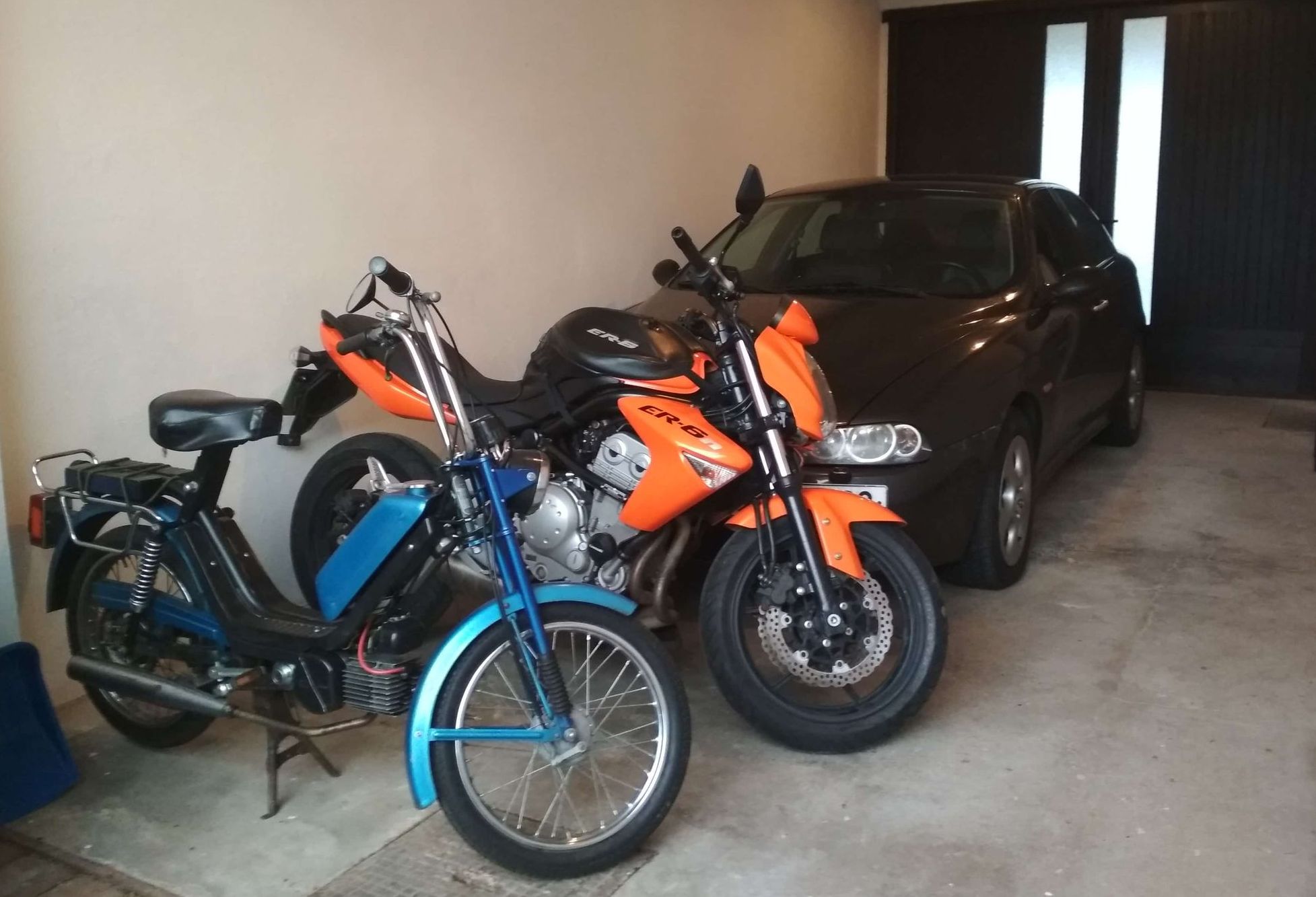V garáži přibyla oranžová Kawasaki ER6 N. Málem tam stála Ducati Monster 620, protože Itálie, vidlicový motor a aby si děvčata rozuměly, že jo :pivko