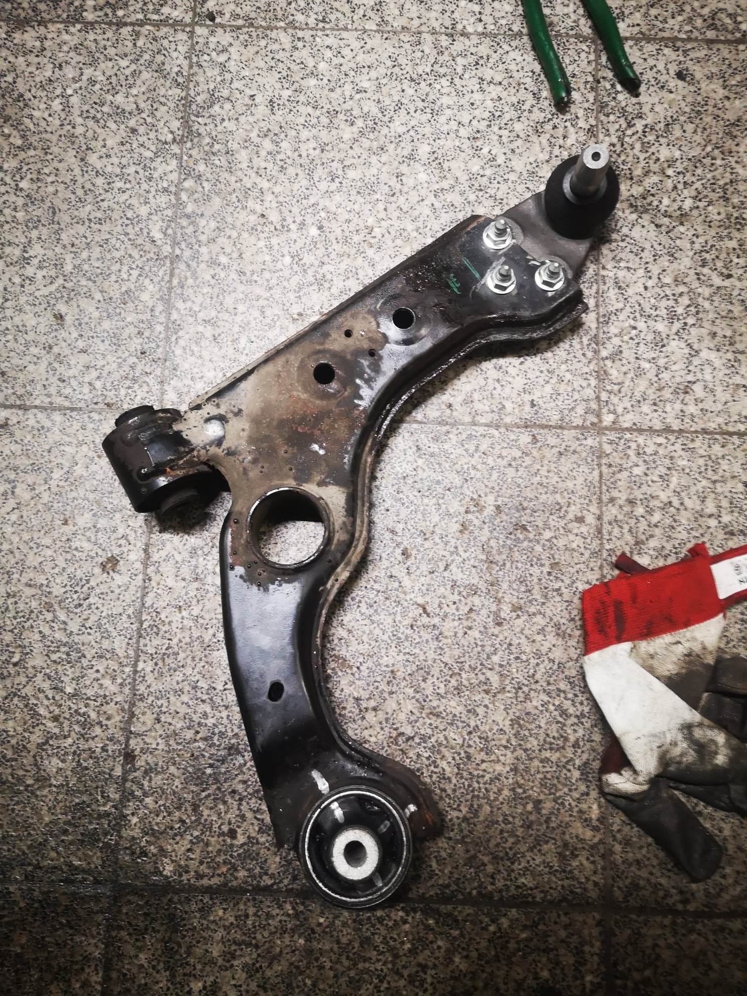 - Prebehla výmena zadných silentblokov predných ramien + čapov oboch ramien. Silenty som dal nakoniec gumené Lemförder a čapy MOOG + sa vymenila rovno manžeta pravého homokineťáku ktorá bola menená ani nie 2 roky dozadu a po dvoch rokoch bola komplet popraskaná takže gumený SPIDAN už nepoužijem nahradil som ho termoplastom od LOBRO a vyzeral úplne totožne s originálom na ľavej strane takže dúfam že to toľko aj vydrží. Pri skladaní sa mi potom pri uťahovaní šroby ktorá drží hliníkovú výstuhu podarilo túto šrobu roztrhnúť aj keď som to ťahal na predpísaný moment 180nm takže som šiel do železiarstva a kúpil všetky 4 nové v rovnakej tvrdosti len s klasickou 6 hrannou hlavou miesto E18.