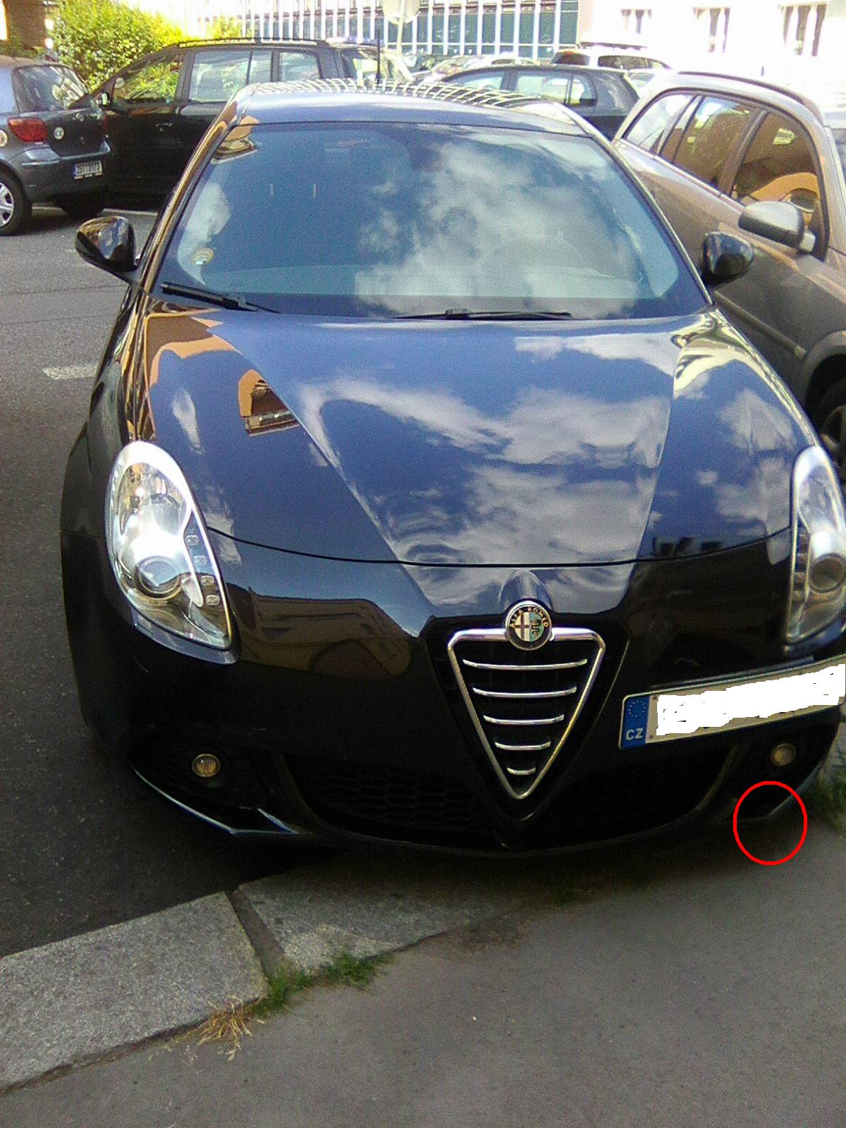 Tak se včera vracíme s ženou domů, minula nás starší paní s malým psíkem. Psík zřejmě tajný Alfista si z celé řady parkujících aut šikno k chodníku vybral naši Alfičku a hezky si část předního spojleru čnící nad chodník pěkně "označkoval". Byli jsme bohužel daleko, takže naše reakce bohužel nulová.