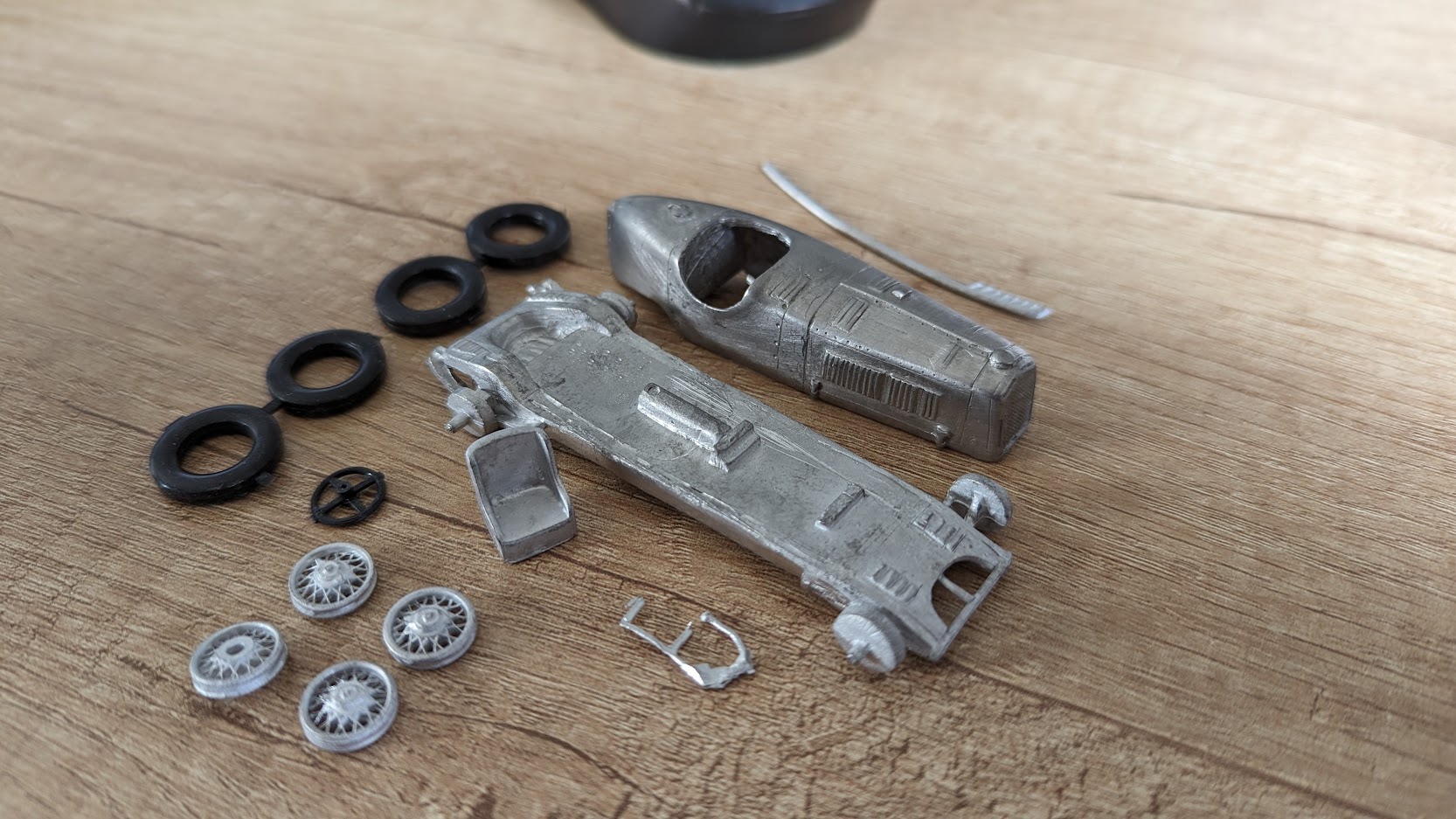 kdyby se někdo chtěl zabavit, tak mi může poskládat a nalakovat tu kovovou věc viz níže :-) mám jich 5 (RLTF, 8c2300 Monza, 8C-35, 12C-37, Tipo 412). Všechno auta pro Grand prix, která jako hotová nekoupíte, ale musíte jít do stavebnice....