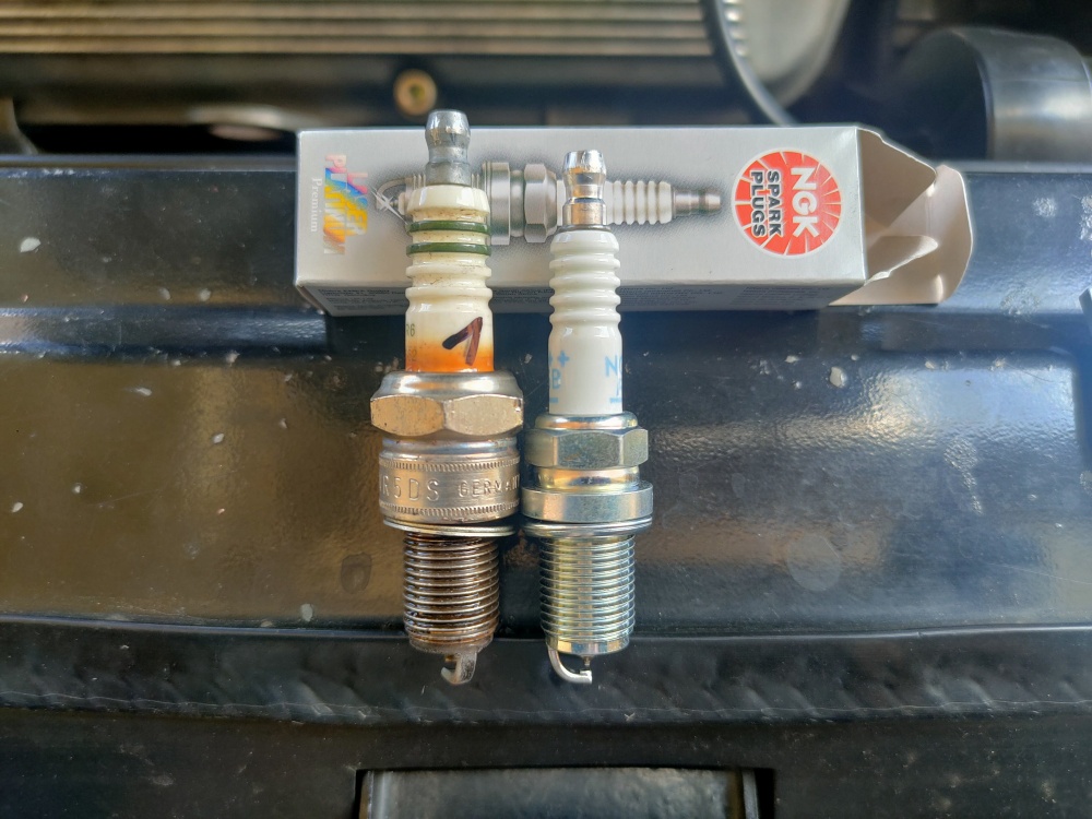 Začal jsem s ní zkraje měsíce trochu víc jezdit, aby se vyjevily případné mouchy před cestou na jih. Začala občas tak divně pocukávat, tak jsem si říkal, že by možná byl čas kouknout na svíčky. Ty sice vypadaly ok, ale k mému údivu nebyl správný typ. Předepsané NGK PGR6A už nejsou k disposici, tak jsem vzal podle všeho ekvivalentní PFR6B. Tam byl kvůli jinému rozměru problém s instalací, ale to se ukázalo, že bylo spíš v mojí hlavě