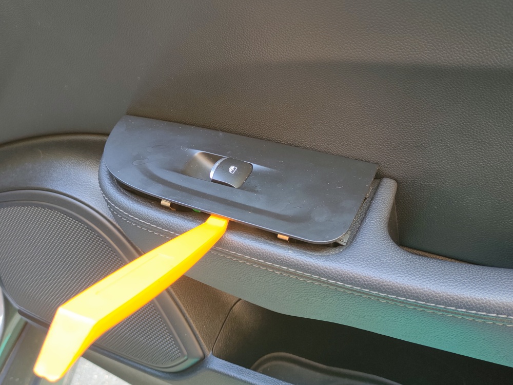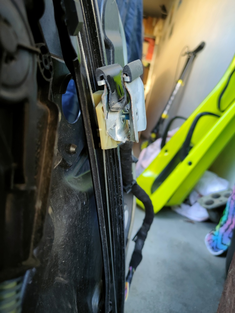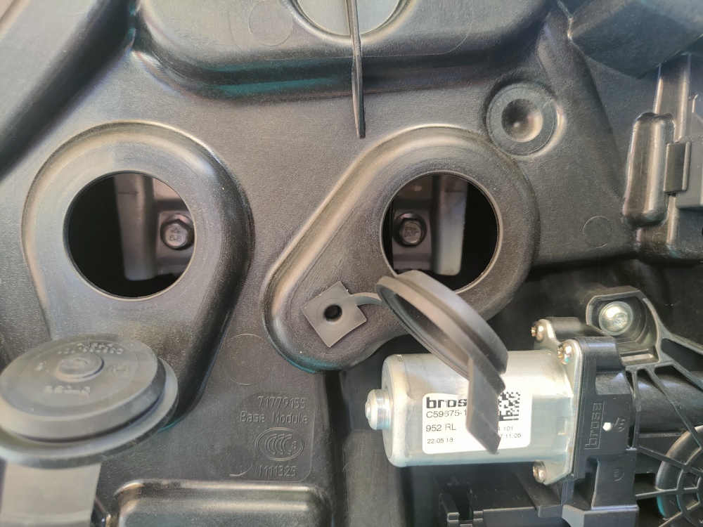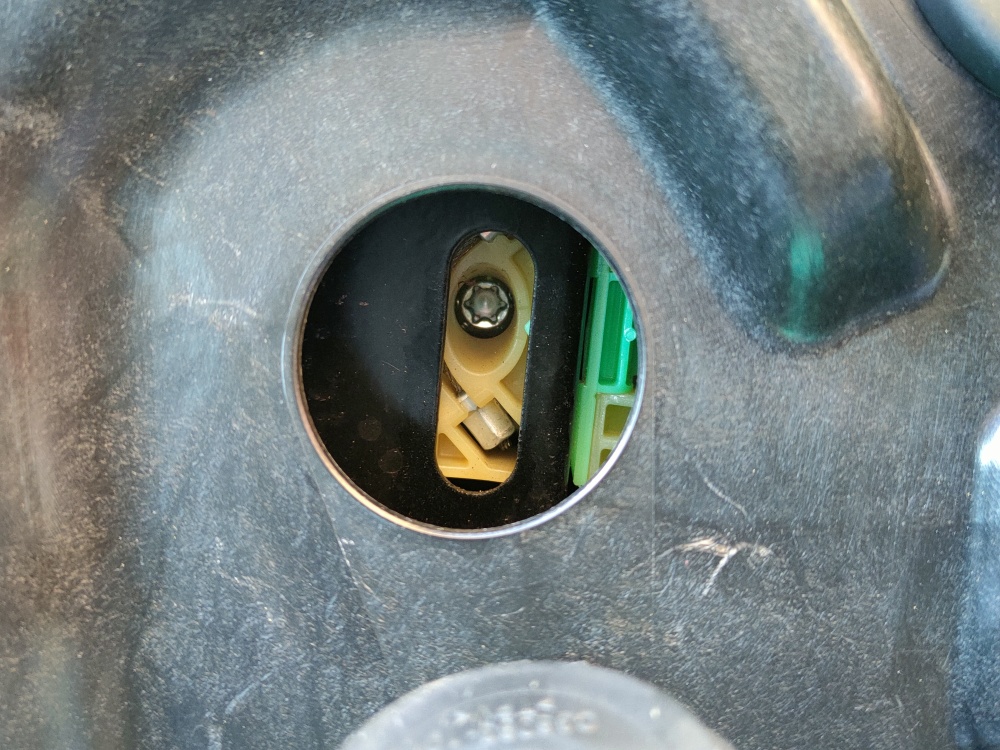 Tohle byl pro mě největší oříšek.... Je třeba připojit ovladač okna a s oknem sjet tak, aby po sejmutí těchto dvou krytek bylo vidět uchycení okna ke stahovačce (je to cca polovina):