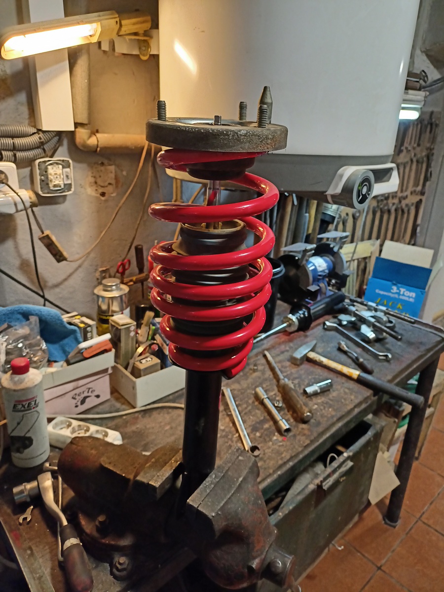 Je to úplně jiný auto teď, príjemně tvrdý, což mi vyhovuje, sedí to jak přibitý, ty tlumiče už to měly za sebou, zadní totálně mrtvý, stabilizačky už si taky vzadu občas kleply, a hlavně už to není vysoký, teda hlavně vepředu, vzadu už to bylo sedlý předtím, když to viselo jen na pružinách