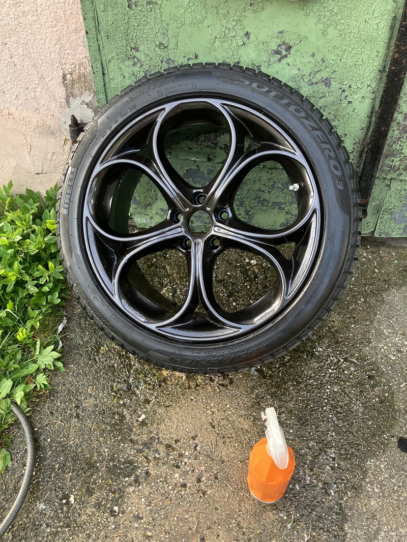 Alfice přezutá o minulém víkendu zpět na letní, vyndány a vyčištěny gumové koberce a nahrazeny letními velury, stejně tak zimní kola prošla očistou než se odebrala k letnímu spánku.