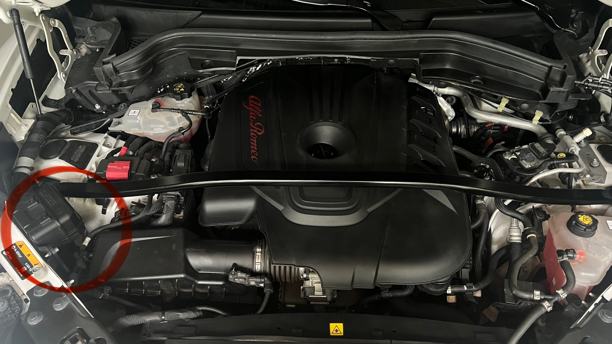 Je to u Giulie. Koukni pod kapotu u světla na straně spolujezdce.