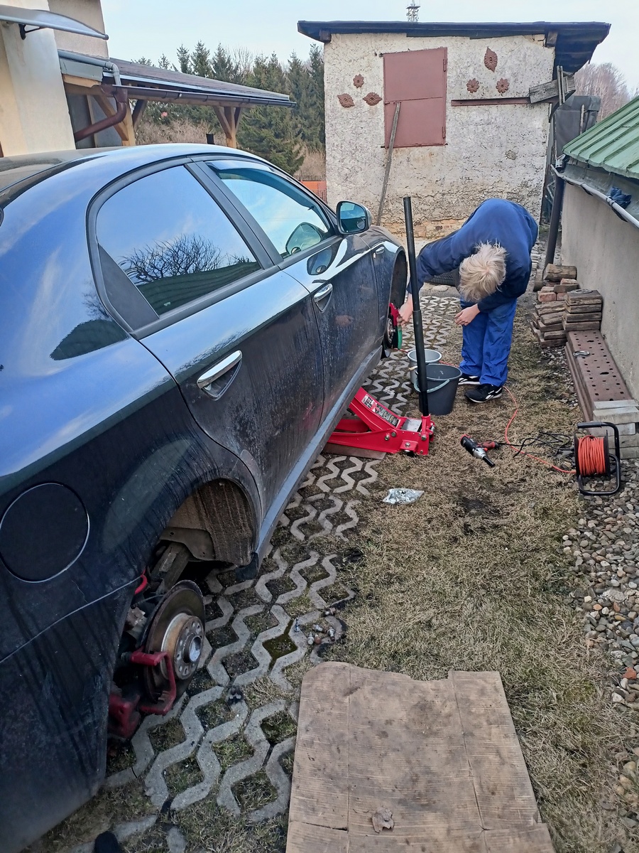 Přes zimu se nic nedělo, jen jsem jezdil, akorát mi občas lehce přibržďovalo levý zadní kolo, tak jsem to koncem března rozebral, obrousil a vyčistil ten bordel, pověřil mladšího potomka očistou třmenů a rovnou nahodil letní