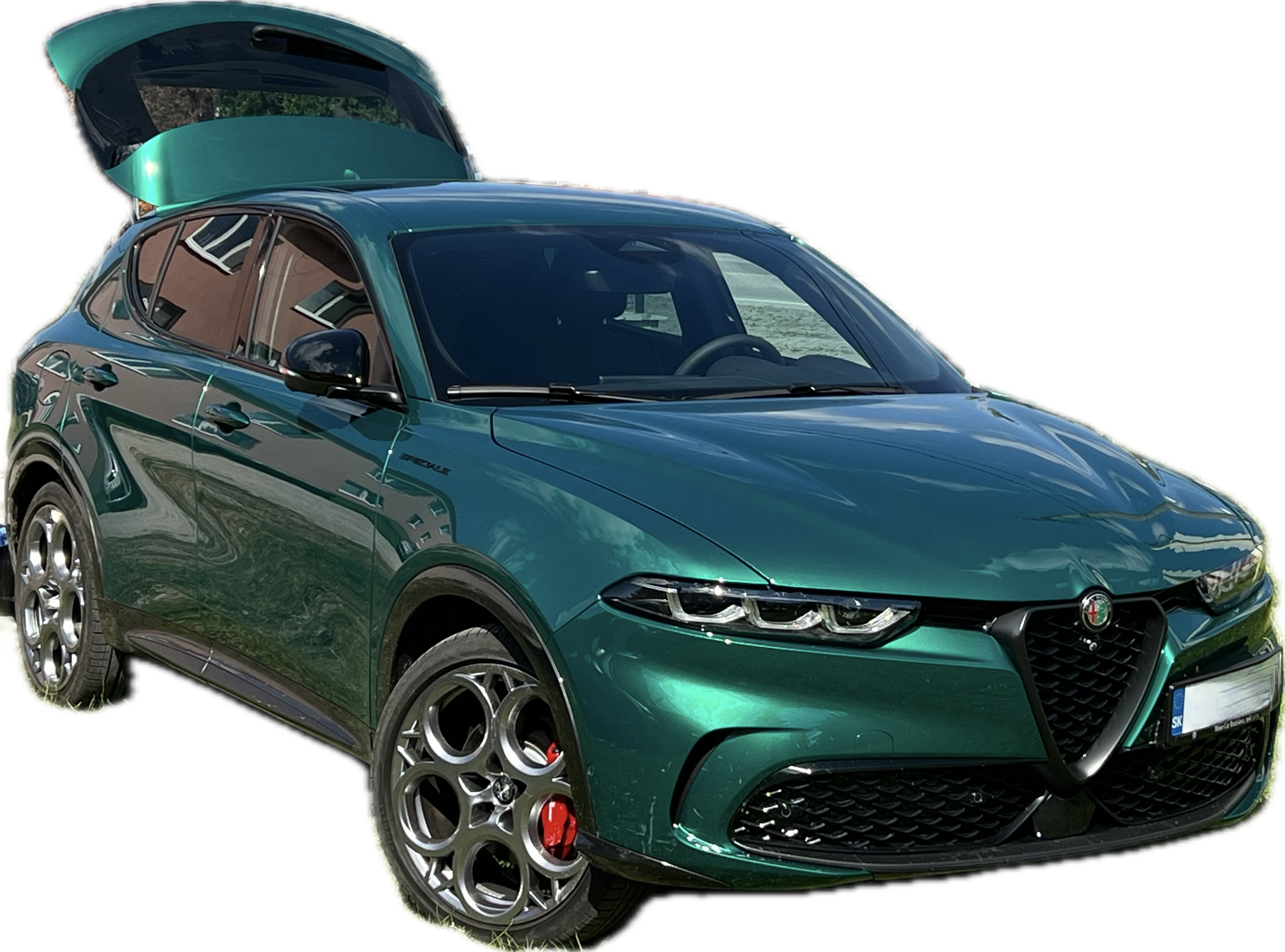 Rad by som sa k vám pridal. Už dlhšie ako mesiac beháme na novej Alfe Romeo TONALE. Vybrali sme Edizione Speciale vo farbe Milano Green- Naša mila "rosnička" má pridaný balík Koža (kožené vyhrievane a vetrane sedadla, nastavitelné v 8 smeroch) a paket Driver assistance Plus (360 st kamera, monitor slepeho uhla) 20" kolesa, brzdy Brembo + Pireli P Zero pneumatiky.