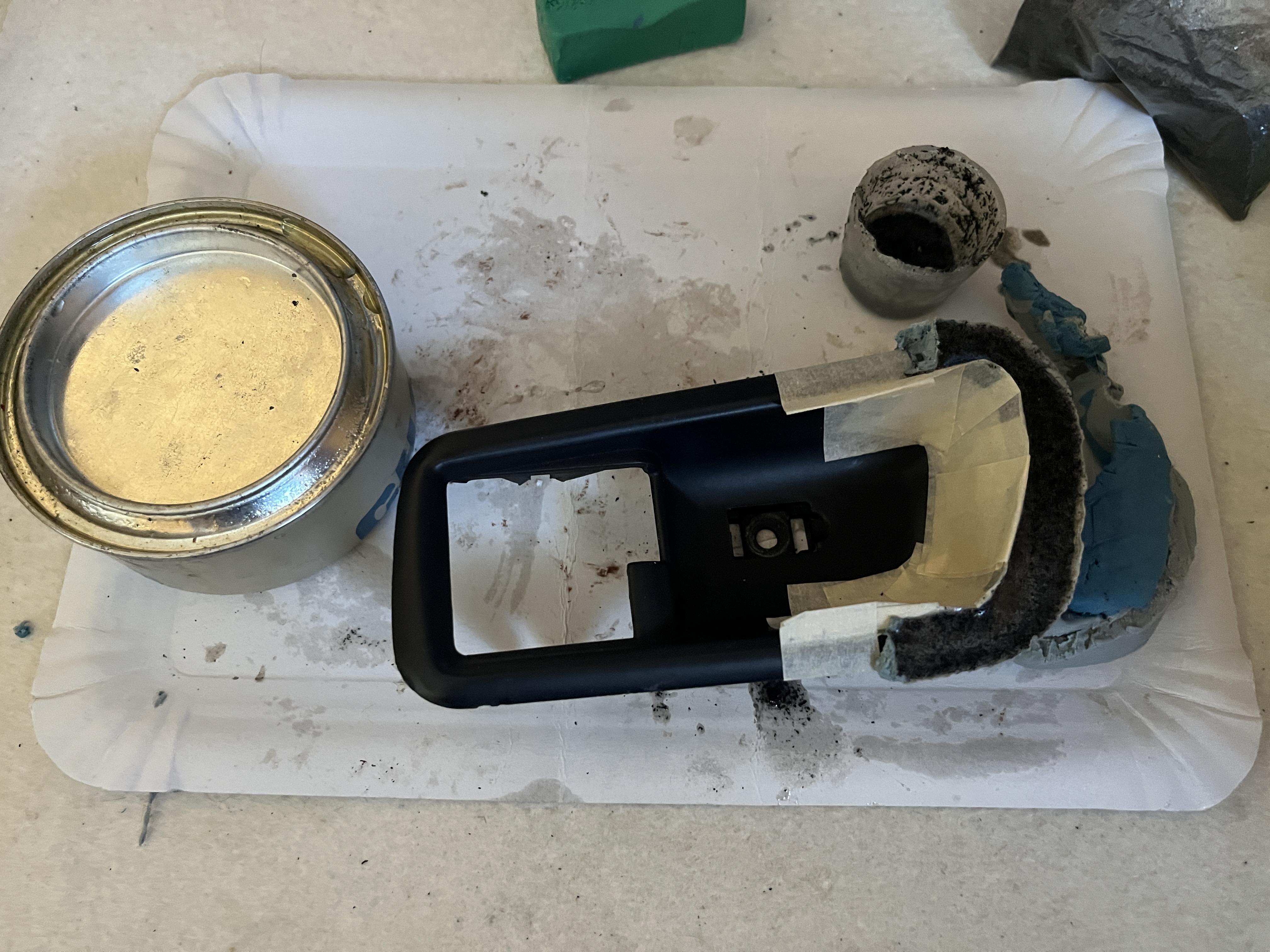 Tak jsem to nějak opravil pomocí formy z plastelíny, nařezal drážky, rozdělal epoxy a přimíchal piliny z plastu ABS. Ještě bych to mohl stříknout matnou černou, nebo potáhnout fólií. Nechám to tak.