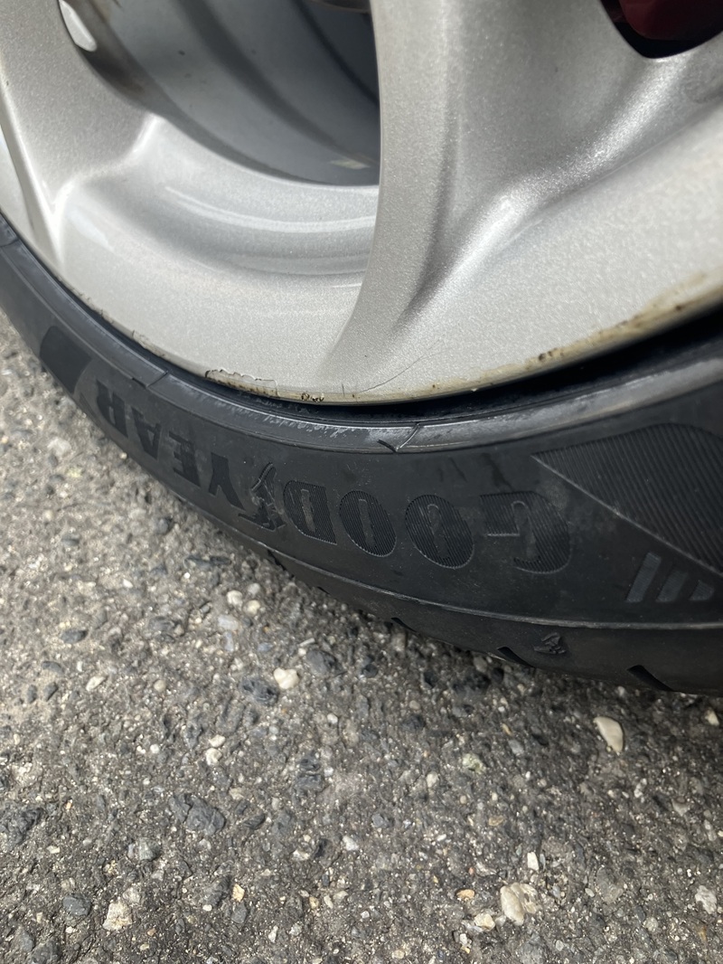 Aby těch poškozených pneumatik nebylo málo, tak si přítelkyně před týdnem, během parkování u koupaliště prořízla pneumatiku na levém předním kole o kus plechu který trčel ze závory zarostlé v trávě. Podařilo se mi pak na bazoši koupit 2ks fungl nových good year eagle f1 asimmetric 6 za parádní cenu, takže hned nazuto a během zimy pak koupím další 2ks stejných pneumatik ať je to na autě stejné.