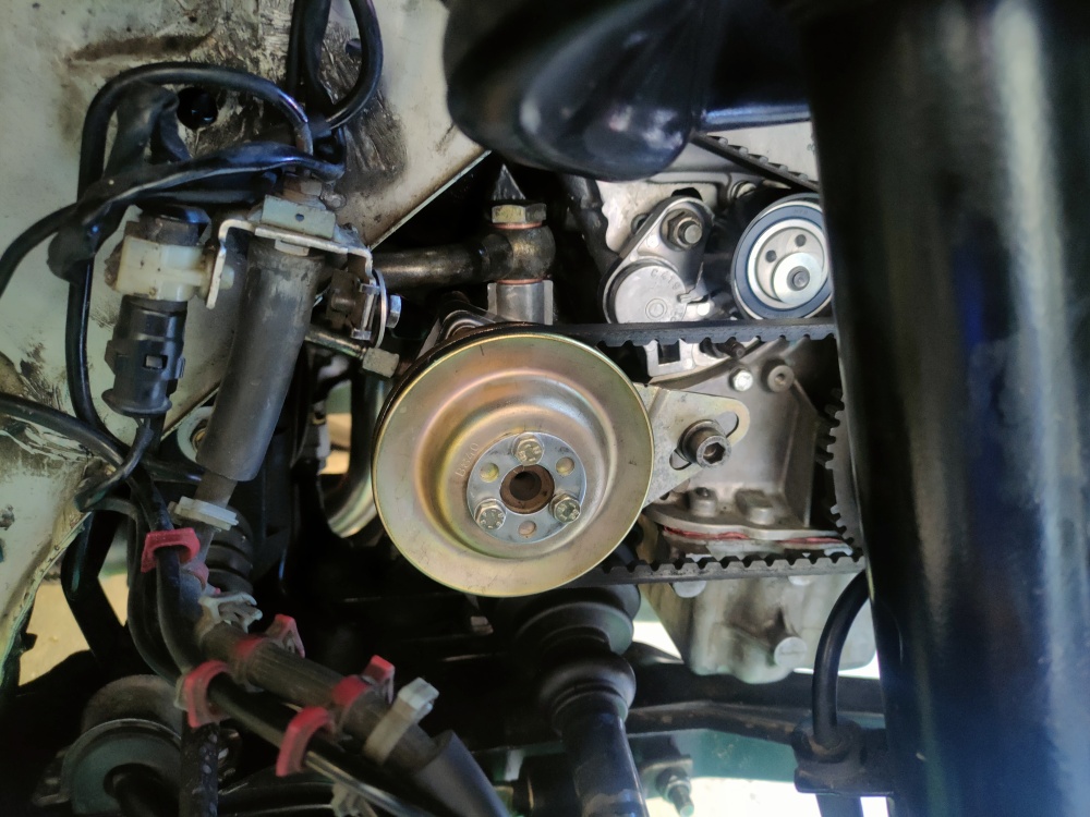 Po složení repasované pumpy se stále ozývalo kňourání. Zároveň měl sevoolej pořád velmi ošklivou barvu. Tak jsem se rozhodl to celé znovu vypustit. Profoukl jsem to stlačeným vzduchem a napustil novým olejem. Po nastartování stále kňourání, ale jak jsem to měl kolem rozvodů celé oddeklované, slyšel jsem, že to jde spíš z vodní pumpy. Povolil jsem odvzdušňovák na termostatu, lehce to fouklo a ztichlo. Co se tam dělo nevím, ale je to teď už vícemeně potichu. Servo je stále trochu slyšet, ale už nevím co s tím. Olej nepění a je krásně čistej, tak už to budu muset nechat být.