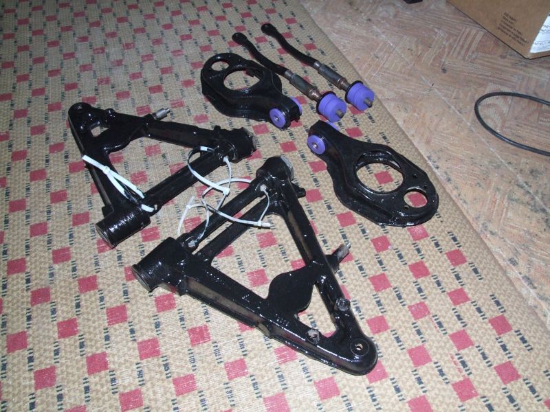 Takže momentální stav- auto na kozách bez přední nápravy a čumáku- dočišťuju podběhy, nátěry, přední náprava připravená, udělaná...