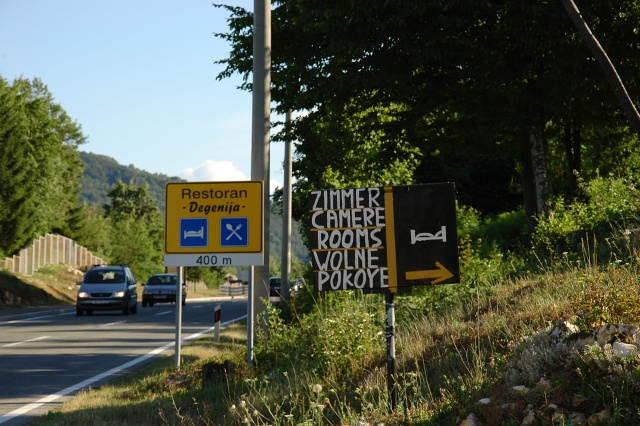 Cesta zpět (vyjeli jsme ráno) vedla opět přes Split a podle původního plánu jsme chtěli najet na dálnici opět v Dugopolje. Cesta však byla zatarasena policisty (asi se něco stalo) a my nevěděli kudy kam. Věděla to však navigace IGo8. Mapy od Teleatlasu jsou bohužel méně přesné pro východní země (lepší jsou od Navteq) a milá navigace mne dotáhla na nádvoří před bránu splitských kasáren. Dozorčí na mne čučel jak zjara, tak jsem raději vojsko opustil a odjel na další dálniční přípojku až za letištěm v Kaštele. Z dálnice jsme sjeli v Gornje Ploče a pokračovali dál po staré silnici do Plitvic. Za Plitvickými jezery jsme před obědem zastavili ve vesnici Selište Drežničko, zapíchli to u nějakého baráku s nápisem „volne pokoye“ u poutače s reklamou na restauraci pro degeny a po domluvě s domácími se ubytovali a vyrazili prohlédnout Plitvická jezera. Parkovali jsme na parkingu Lička Kuča (hlavní vchod národního parku). Po příchodu z parku zpět na parkoviště se hned zastavte zaplatit v budce poplatek. Kartičku vám odblokují a máte 20 minut na výjezd z parkoviště.