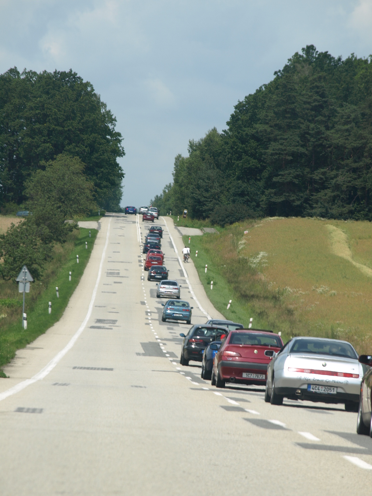 kolona byla opravdu luxusni...jel jsem nekde ke konci myslim a pohledy na ruznych stoupanich a nebo rovinkach ....krasa....predemnou jelo cerne Mito a za mnou Limach se 159kou....opravdu moc pekne...doufam ze jsem Limachovi moc nezacoudil cumak auta