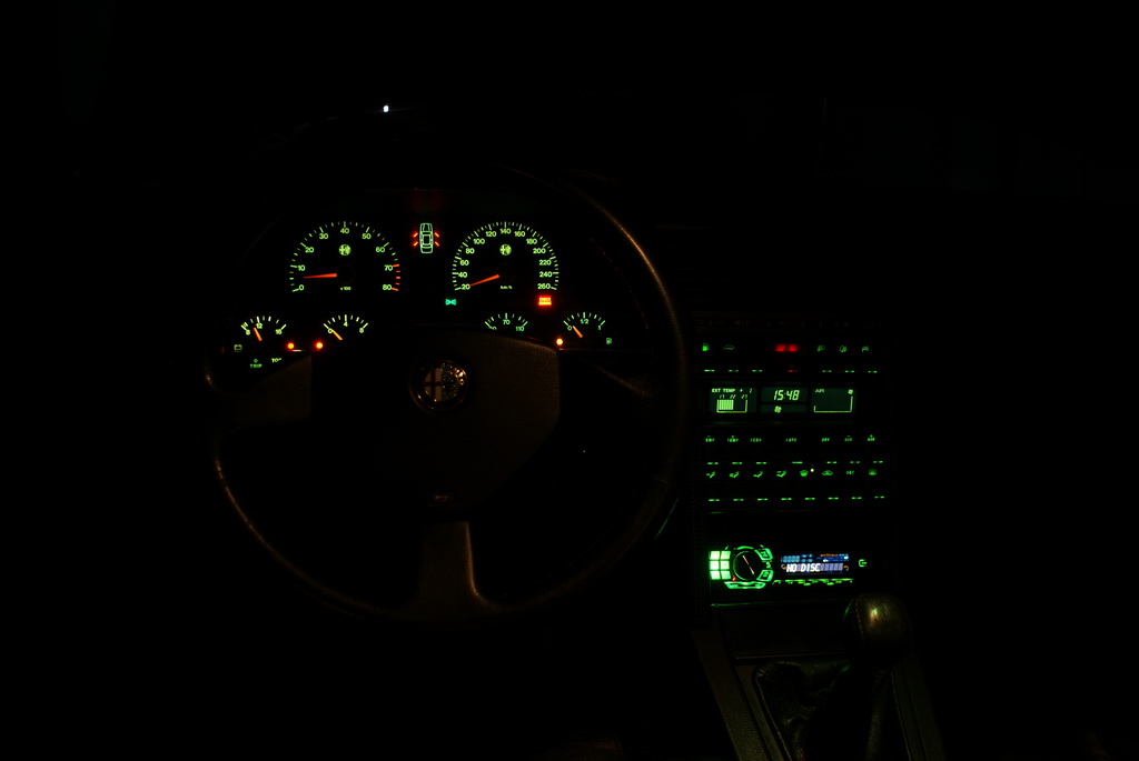 Přesně tohle světýlko mám u řidiče z té druhé alfy. Ten držák u spolujezdce nemám, že já se na to nepodíval, než ji odvezl do šrotu. To už je jedno, ale je to fakt super, taková blbost, ale potěší když to svítí i na nohy. Ty diody máš pěkně vyřešený. Úplně nejlepší je ale to automaticky zatmavovací zrcátko. Teď jsem jedno viděl na nějaké nizozemské inzerci v přepočtu za 2000kč. Ale musím šetřit na Michelin ES :roll: